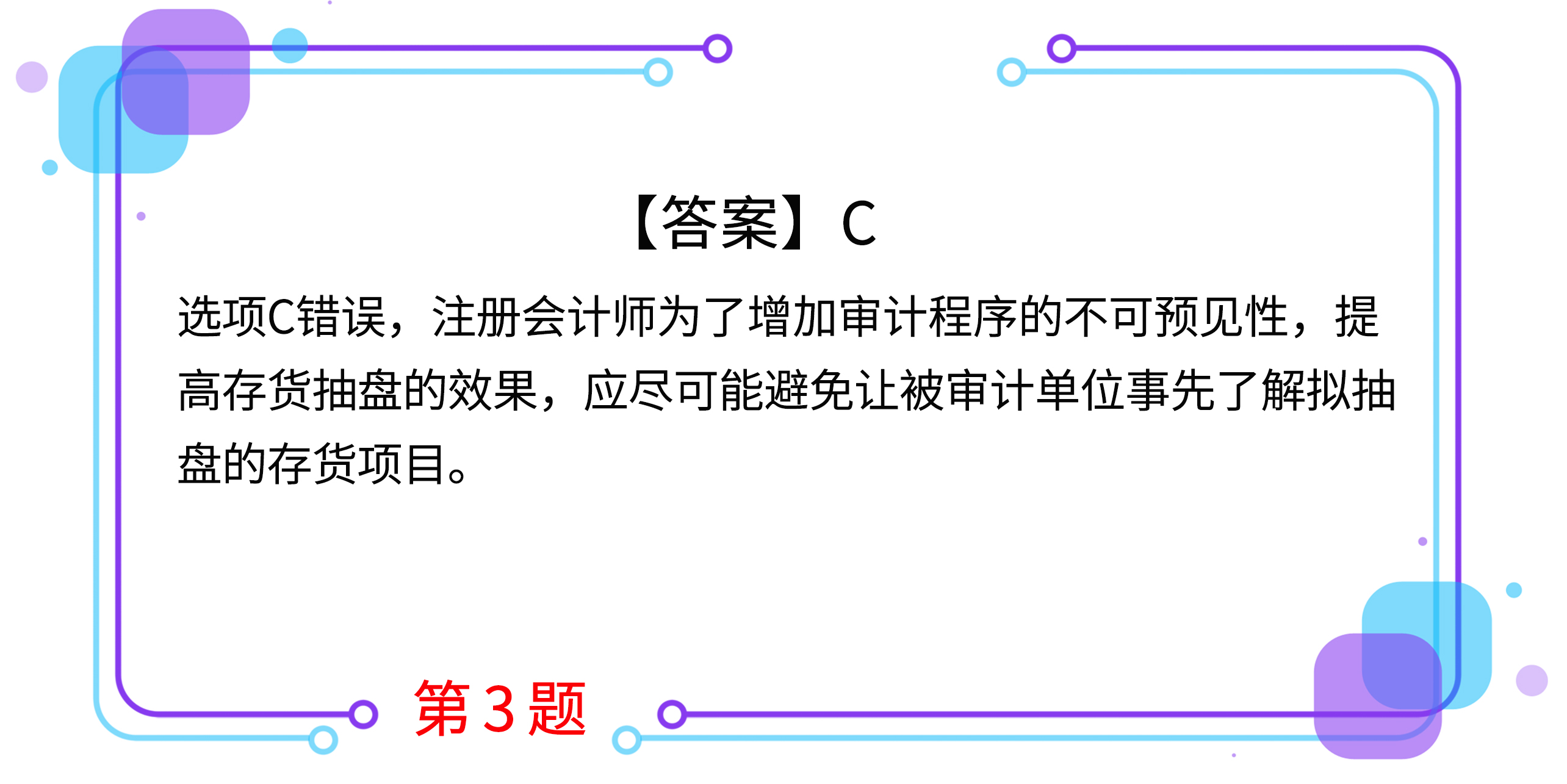 3.下列有關(guān)對存貨實施抽盤程序的說法中,錯誤的是( )。
