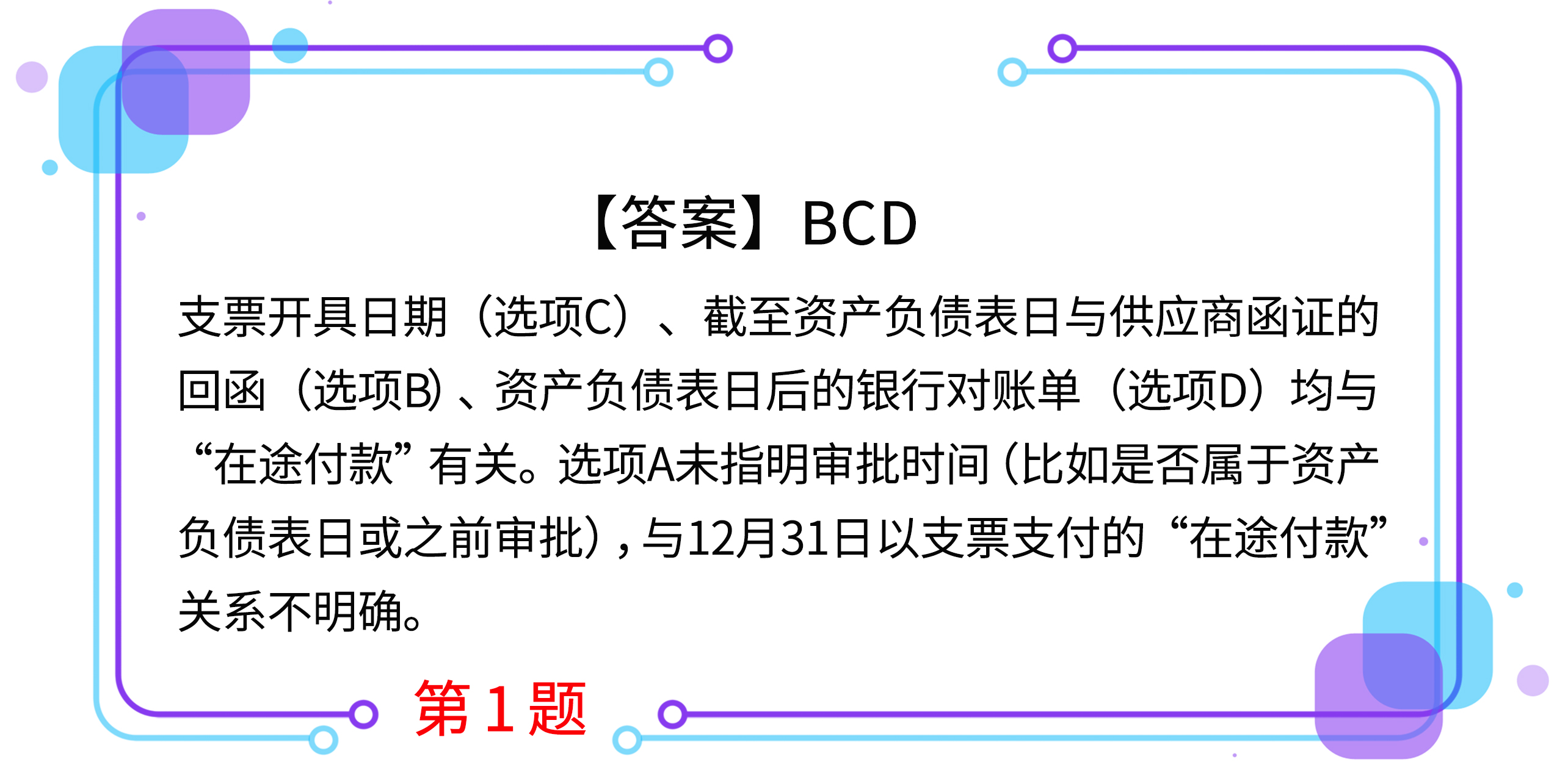 1.被審計單位2019年12月31日的銀行存款余額調(diào)節(jié)表包括一筆“企業(yè)已付、銀行未付”調(diào)節(jié)項,其內(nèi)容為以支票支付賒購材料款。下列審計程序中,能為該調(diào)節(jié)項提供審計證據(jù)的有( )。