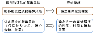 針對評估的舞弊導(dǎo)致的重大錯報風險,注冊會計師應(yīng)當從兩個層面予以應(yīng)對,如圖所示。