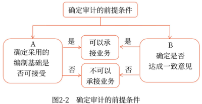 判斷審計(jì)的前提條件(包含兩個(gè)必不可少的方面)是否同時(shí)滿足,如圖2-2中的條件A和條件B。