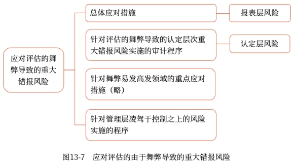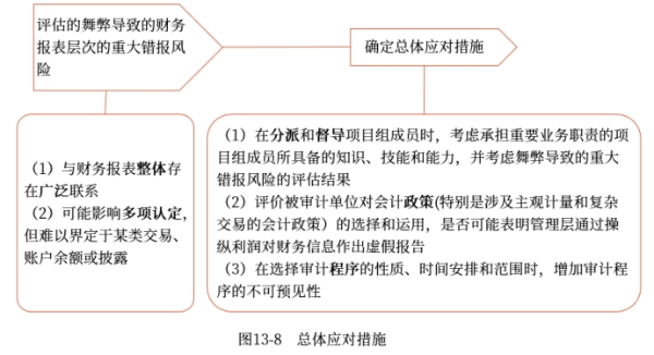 針對評估的舞弊導致的財務報表層次重大錯報風險,注冊會計師確定的總體應對措施,如圖13-8所示。