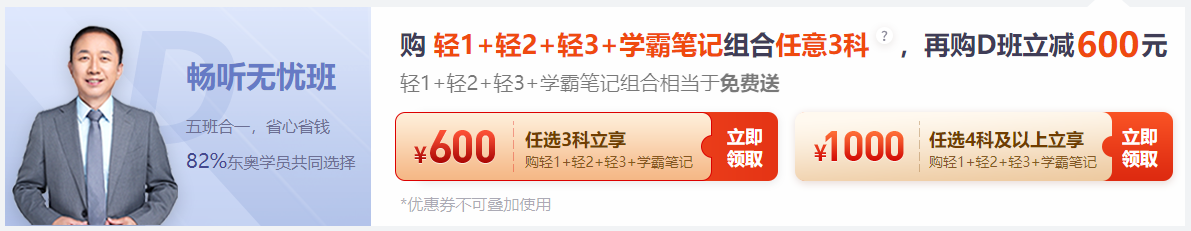 凡購(gòu)輕1+輕2+輕3+學(xué)霸筆記組合任意3科,再購(gòu)D班立減600元