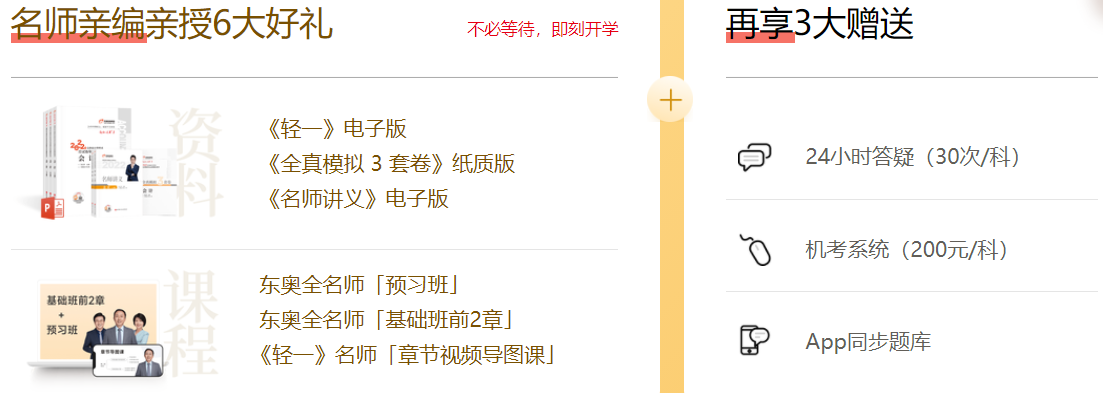 注冊(cè)會(huì)計(jì)師備考正在進(jìn)行中,東奧《輕一》備受考生信賴,不斷創(chuàng)新之下,新版輕一的使用體驗(yàn)更上一層!東奧《輕一》本身內(nèi)容豐富,是助力備考的一大利器,其附贈(zèng)內(nèi)容也不多匡讓,極具使用價(jià)值!現(xiàn)在購(gòu)買《輕一》立享《輕一》電子版圖書,解決疫情之下備考資料配送難題!除此之外還贈(zèng)其他多重好禮,多方面助力備考,希望能夠幫助考生實(shí)現(xiàn)順利通過!