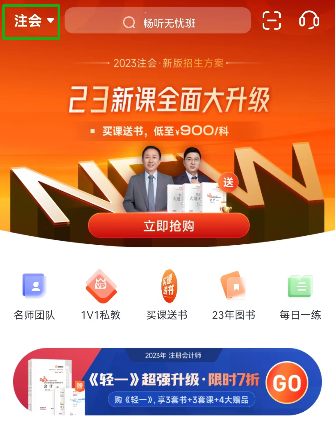 ■ 步驟一:下載“會計云課堂”并登錄■ 步驟二:切換選項至“注會”