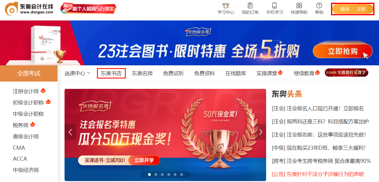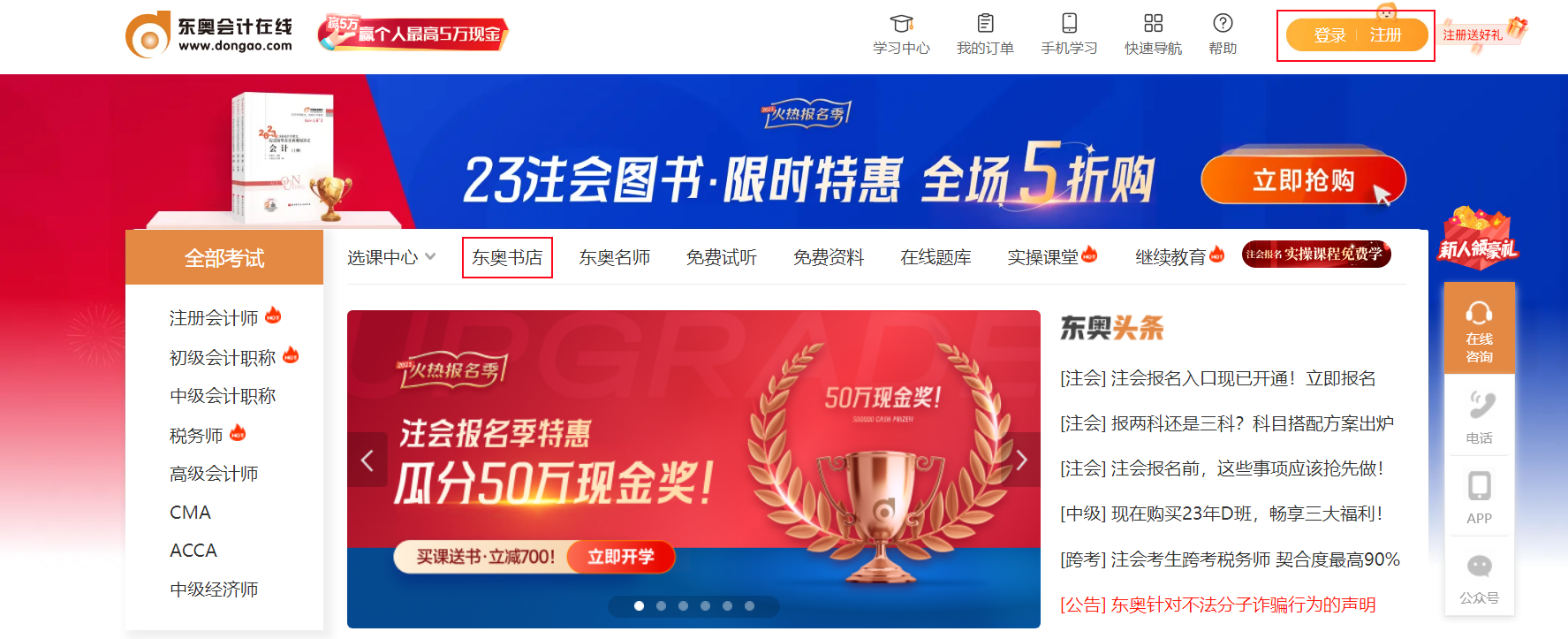 ① 登錄東奧會(huì)計(jì)在線官網(wǎng),點(diǎn)擊東奧書店。