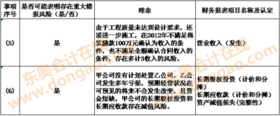 我們認為,除“三、導致保留意見的事項”段所述事項可能產(chǎn)生的影響外,甲公司財務報表在所有重大方面按照企業(yè)會計準則的規(guī)定編制,公允反映了甲公司2012年12月31日的財務狀況以及2012年度的經(jīng)營成果和現(xiàn)金流量。
