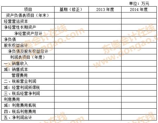 (1)編制修正后基期及2013年度、2014年度的預(yù)計(jì)資產(chǎn)負(fù)債表和預(yù)計(jì)利潤表(結(jié)果填人下方表格中,不用列出計(jì)算過程),并計(jì)算甲公司2013年度及2014年度的實(shí)體現(xiàn)金流量。