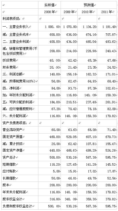 (1)甲公司的利潤表和資產(chǎn)負債表主要數(shù)據(jù)如下表所示。其中,2008年為實際值,2009年至2011年為預(yù)測值(其中資產(chǎn)負債表項目為期末值)。