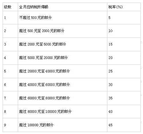 工資、薪金所得個人所得稅稅率表