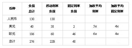 因?yàn)槭袌?chǎng)利率約為4%,美元和歐元的加權(quán)平均固定利率也為4%,所以固定利率只承擔(dān)匯率風(fēng)險(xiǎn)。