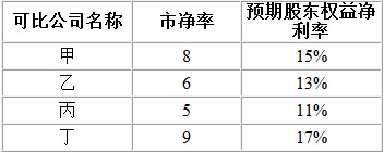 1.A公司是一家制造醫(yī)療設(shè)備的上市公司,每股凈資產(chǎn)是4.6元,預(yù)期股東權(quán)益凈利率是16%,當(dāng)前股票價(jià)格是48元。為了對(duì)A公司當(dāng)前股價(jià)是否偏離價(jià)值進(jìn)行判斷,投資者收集了以下4個(gè)可比公司的有關(guān)數(shù)據(jù)。