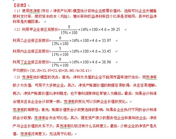 (3)分析市凈率估價(jià)模型的優(yōu)點(diǎn)和局限性。