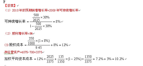 (1)計(jì)算B公司2010年的預(yù)期銷售增長(zhǎng)率。