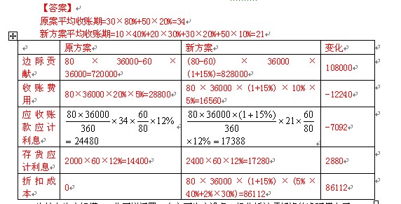 (1)計(jì)算改變信用政策后邊際貢獻(xiàn)、收賬費(fèi)用、應(yīng)收賬款應(yīng)計(jì)利息、存貨應(yīng)計(jì)利息、現(xiàn)金折扣成本的變化。