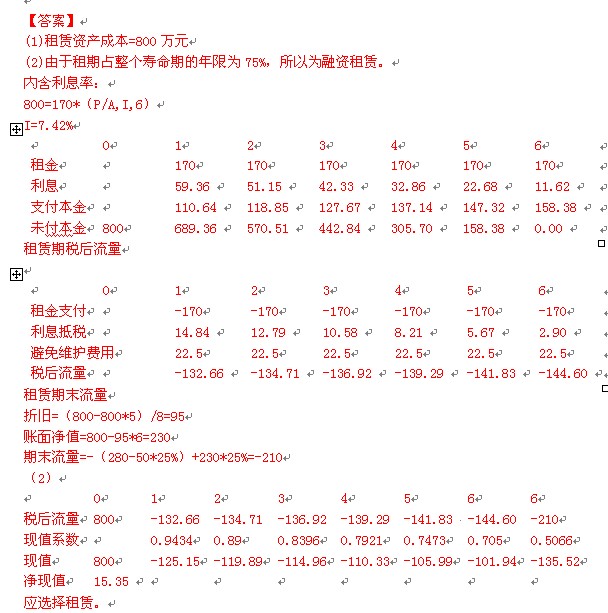 如果以租賃方式取得該設(shè)備,租賃公司要求的租金為每年170萬(wàn)元,在每年年末支付,租期6年,租賃期內(nèi)不得退租。租賃公司負(fù)責(zé)設(shè)備的運(yùn)輸和安裝調(diào)試,并負(fù)責(zé)租賃期內(nèi)設(shè)備的維護(hù)。租賃期滿設(shè)備所有權(quán)不轉(zhuǎn)讓。