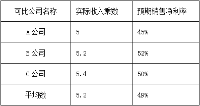 收入乘數(shù)估計(jì)方法主要適用于銷售成本率較低的服務(wù)類企業(yè),或者銷售成本率趨同的傳統(tǒng)行業(yè)的企業(yè)。