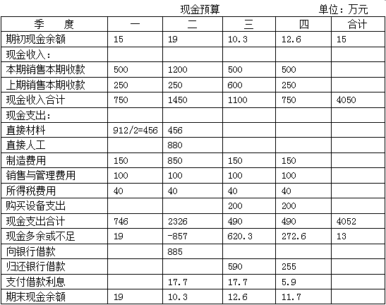 第二季度期末現(xiàn)金余額=-857+885-17.7=10.30(萬元)