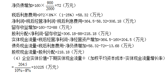 企業(yè)股權(quán)價值=企業(yè)實體價值-凈債務(wù)價值=10225-900=9325(萬元)