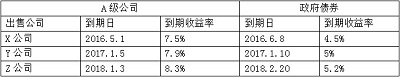 2012年1月1日,公司收集了當(dāng)時上市交易的3種A級公司債券及與這些上市債券到期日接近的政府債券的相關(guān)信息。