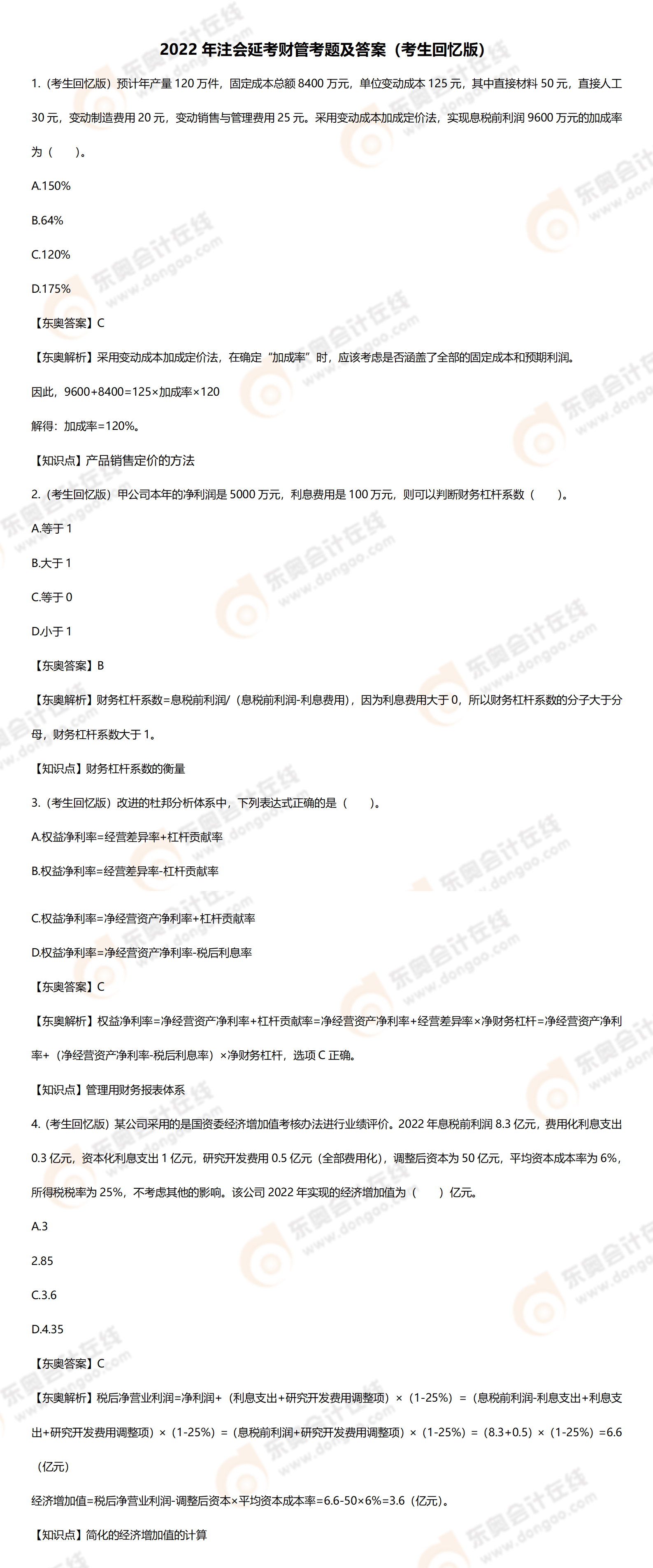 2022年CPA延考地區(qū)《財(cái)管》考題及參考答案正在整理中,即將更新。