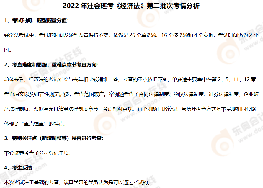 2022年注會延考《經(jīng)濟法》第二批次考點總結(jié)及考情分析