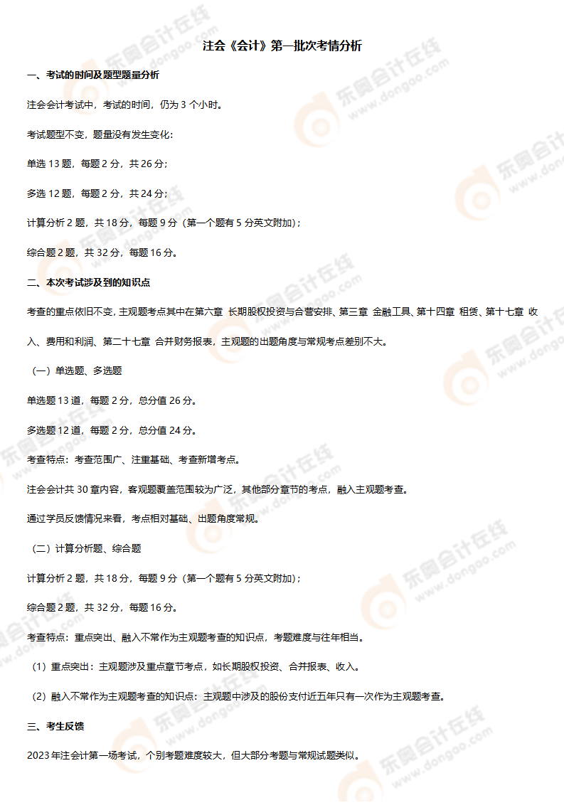 2023年注會會計(jì)第一批次考情分析及考點(diǎn)總結(jié)(考生回憶版)