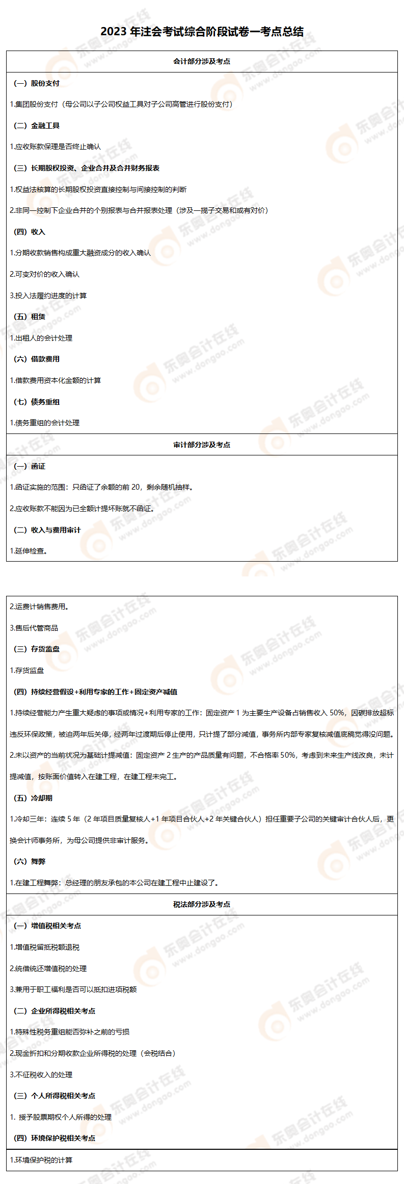 2023年注會綜合階段試卷一考情考點總結(jié)