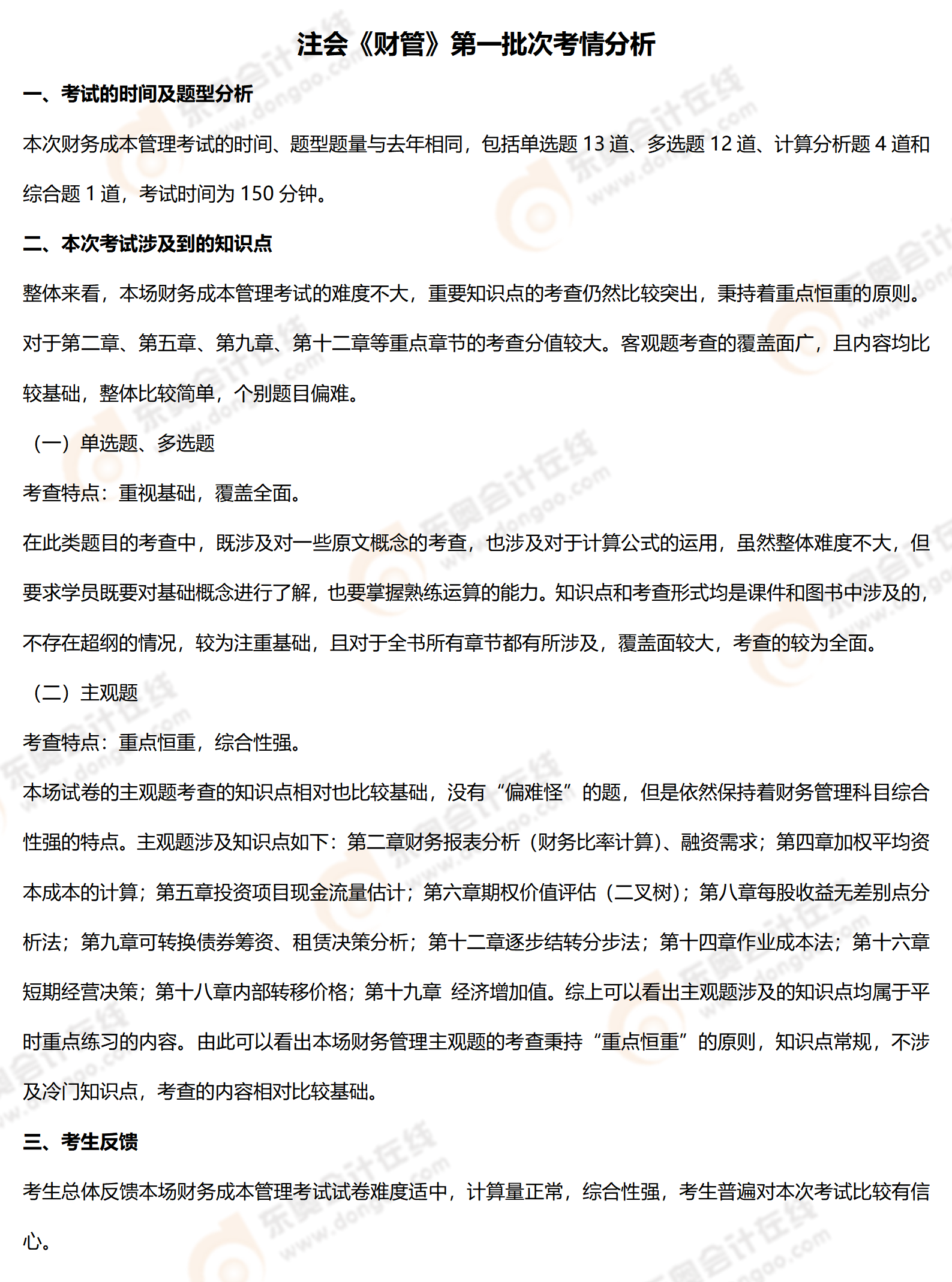 2023年注會(huì)財(cái)管第一批次考點(diǎn)總結(jié)及考情分析