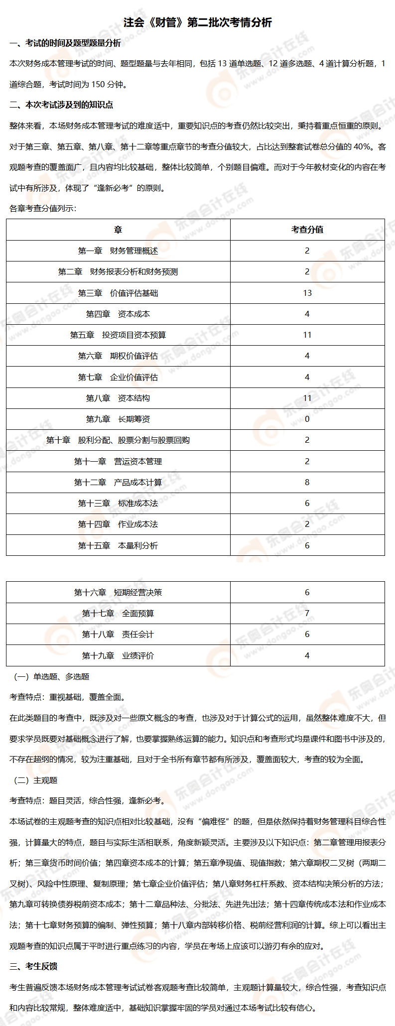 2023年注會財管第二批次考點總結(jié)及考情分析