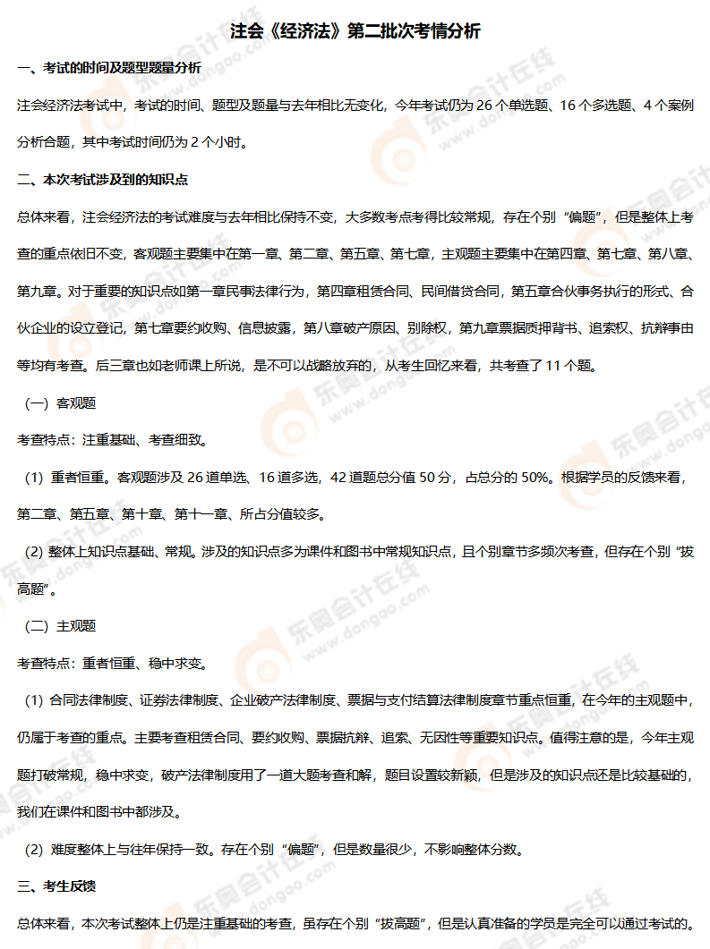 注:以上注會(huì)經(jīng)濟(jì)法考試試題內(nèi)容由考生回憶反饋,東奧教研團(tuán)隊(duì)統(tǒng)計(jì),東奧會(huì)計(jì)在線整理發(fā)布