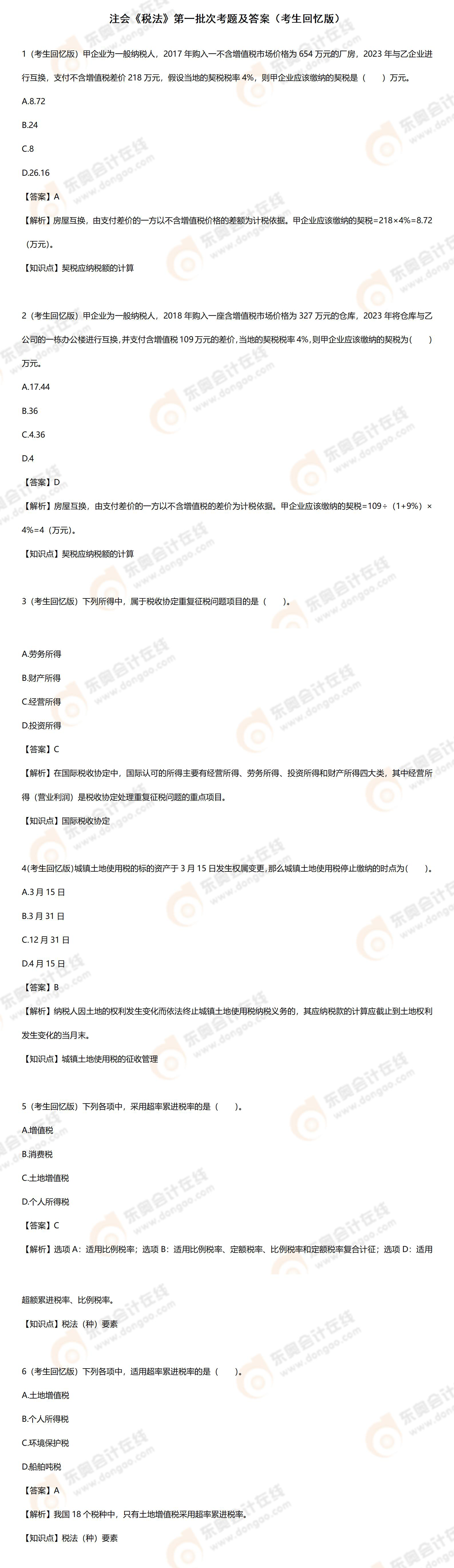 2024年注冊(cè)會(huì)計(jì)師稅法第一批次考題及答案解析(考生回憶版)