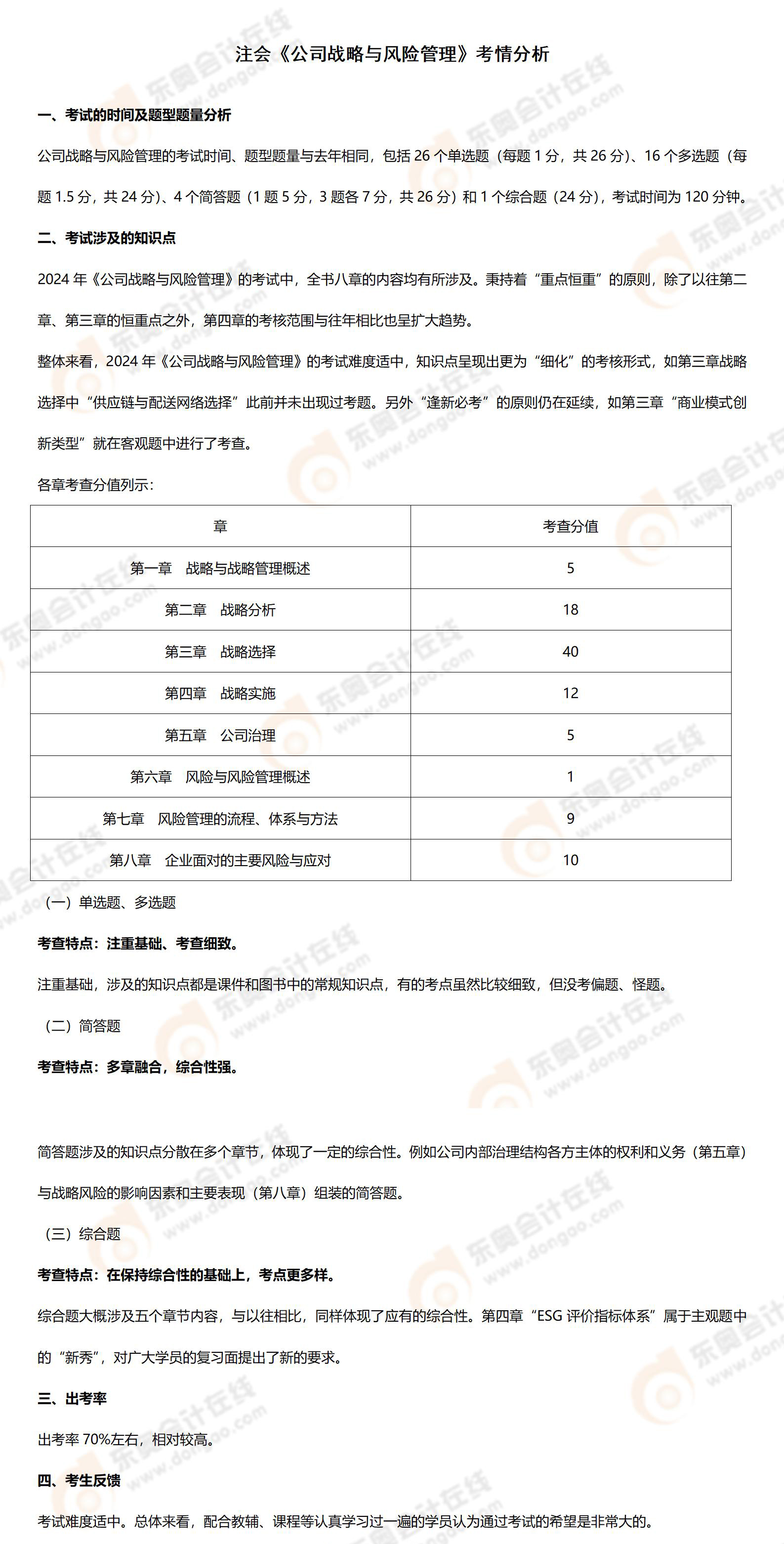 2024年注會戰(zhàn)略考情分析及考點(diǎn)總結(jié)(考生回憶版)