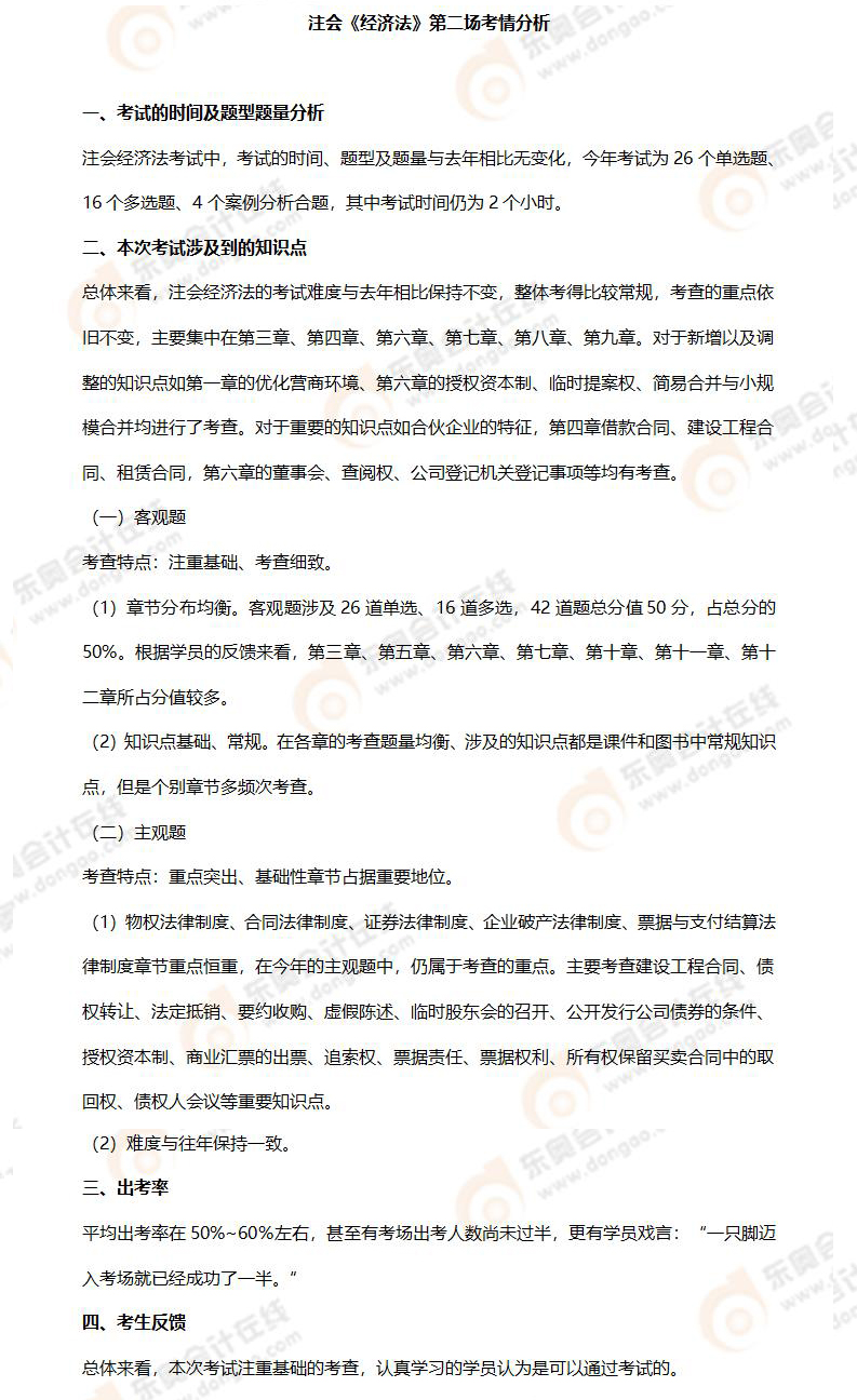 注:以上注會經(jīng)濟法考試試題內(nèi)容由考生回憶反饋,東奧教研團隊統(tǒng)計,東奧會計在線整理發(fā)布