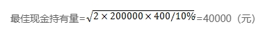 已知:某公司現(xiàn)金收支平衡,預(yù)計全年現(xiàn)金需要量為200000元,現(xiàn)金與有價證券的轉(zhuǎn)換成本為每次400元,有價證券年利率為10%。一年按360天計算。