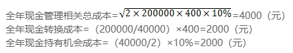 (2)計算最佳現(xiàn)金持有量下的全年現(xiàn)金相關(guān)總成本、全年現(xiàn)金轉(zhuǎn)換成本和全年現(xiàn)金持有機會成本。