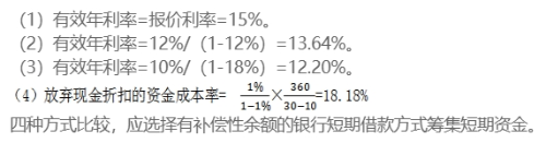 (3)銀行短期借款,利息率為10%,銀行要求補(bǔ)償性余額為借款額的18%;