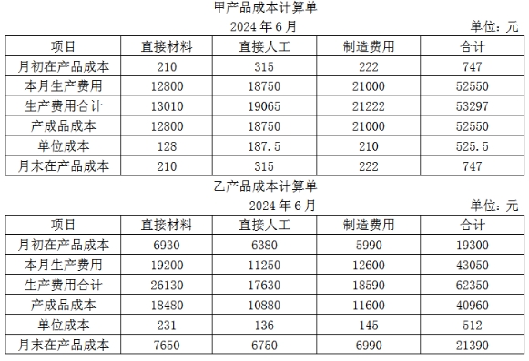 (4)甲產(chǎn)品在產(chǎn)品成本按年初數(shù)固定計算,乙產(chǎn)品在產(chǎn)品成本按定額成本計算。