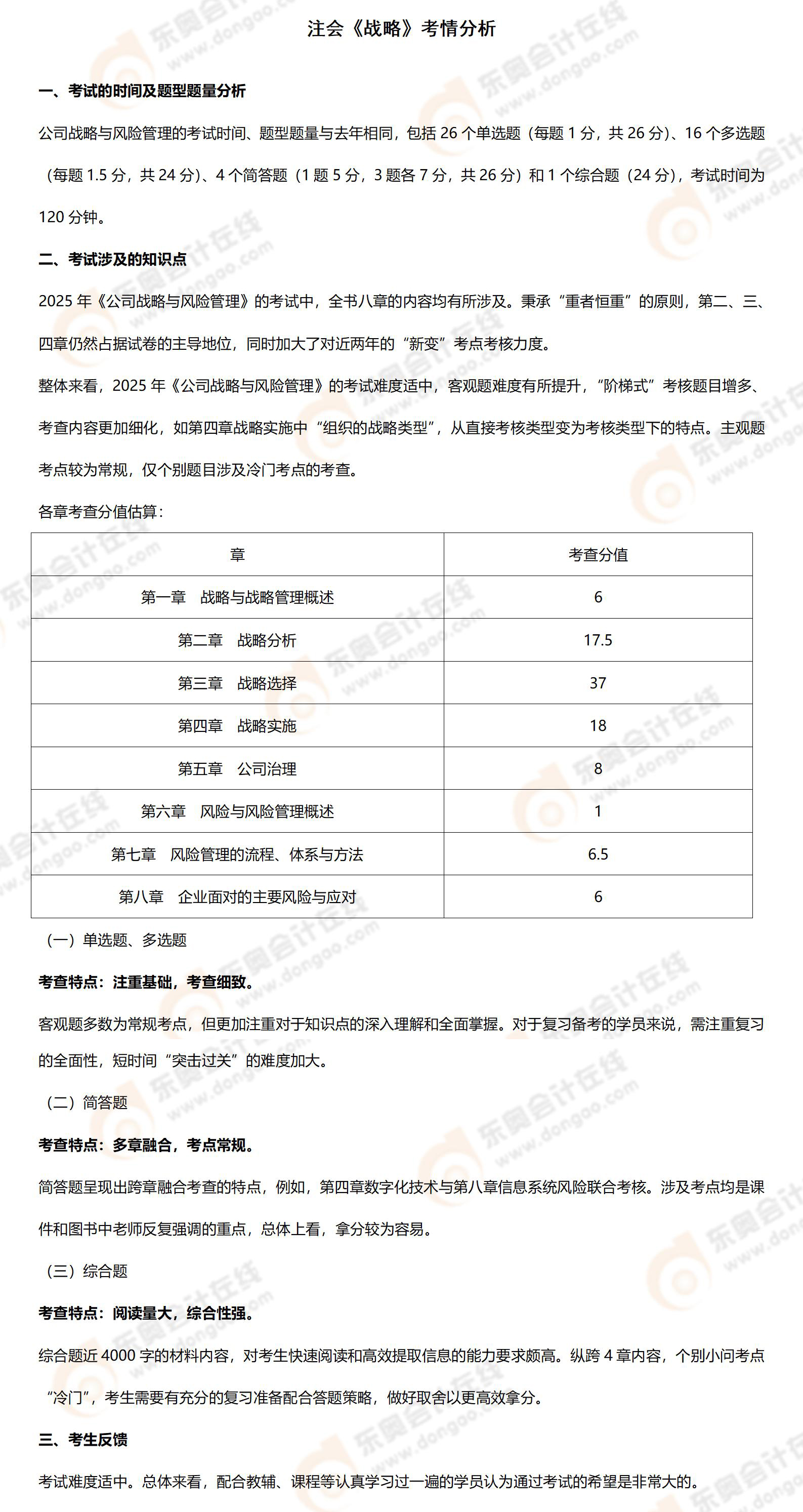 2025年注冊(cè)會(huì)計(jì)師戰(zhàn)略考情分析及考點(diǎn)總結(jié)(考生回憶版)