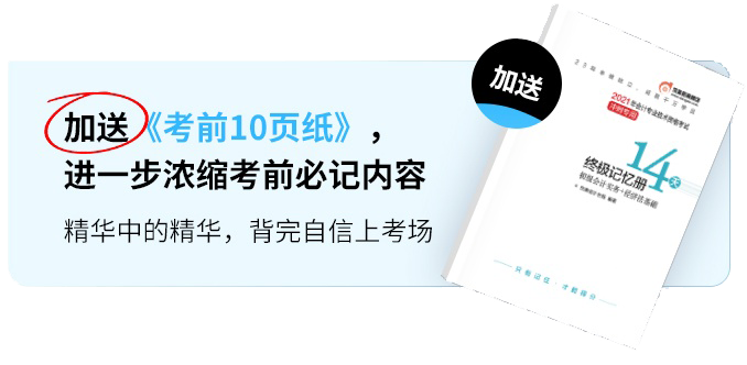 在歷年CPA考試當中,越有50%的分數(shù)來源于記憶,多選題和主觀題均需在“應用”的基礎上才能得分!名師精心編撰三大版塊,通過學、背、練一體化同步進行,在21天內幫你盡可能的掌握更多知識點。是不是以為這就結束了?當然沒有!備受考生好評的臨考神器—最后十頁紙,直接隨書免費附贈!