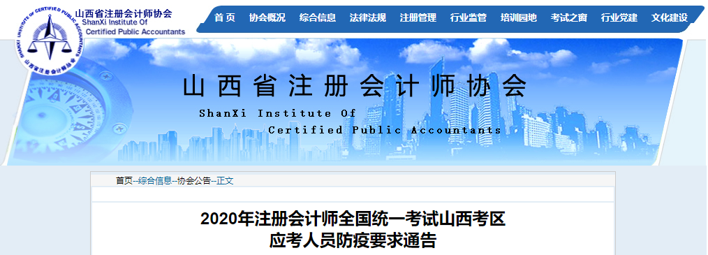 2020年注冊會計師考試山西考區(qū)應(yīng)考人員防疫要求通告