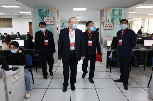 巡視期間,劉興云廳長實(shí)地查看了考場內(nèi)考生考試情況,詳細(xì)了解疫情防控、考場設(shè)置、報(bào)考人數(shù)、實(shí)考人數(shù)、考點(diǎn)考務(wù)等情況,尤其對(duì)加強(qiáng)疫情防控措施進(jìn)行了重點(diǎn)關(guān)切。劉廳長對(duì)歷年來注冊(cè)會(huì)計(jì)師考試考務(wù)管理工作給予充分肯定,對(duì)在疫情防控的特殊時(shí)期各高??朔щy大力支持并組織好本次考試表示感謝,對(duì)考試工作人員的辛勤工作表示慰問。強(qiáng)調(diào)要繼續(xù)精心組織、嚴(yán)格要求,認(rèn)真做好考試工作,確??荚嚢踩闶д`,要嚴(yán)肅考試紀(jì)律,堅(jiān)決維護(hù)考試公平公正,讓考生安心,讓社會(huì)滿意。