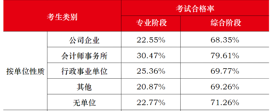 與其他類(lèi)人群相比,會(huì)計(jì)師事務(wù)所從業(yè)人員無(wú)論是專(zhuān)業(yè)階段還是綜合階段,考試合格率均大于其他類(lèi)考生人群。
