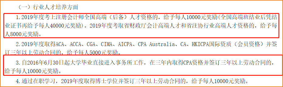 在江蘇省注協(xié)發(fā)布的關(guān)于組織申報2019年度江蘇省注冊會計師行業(yè)人才培養(yǎng)專項資金獎補項目的通知中,明確了申報范圍及標(biāo)準(zhǔn)。符合條件的行業(yè)人才最高可獲得40000元獎勵。