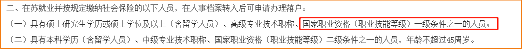 在蘇州市政府關(guān)于調(diào)整人才落戶相關(guān)政策的通知中表示:具有碩士研究生學(xué)歷或碩士學(xué)位及以上(含留學(xué)人員)、高級專業(yè)技術(shù)職稱、國家職業(yè)資格(職業(yè)技能等級)一級條件之一的人員,在蘇就業(yè)并按規(guī)定繳納社會保險,在人事檔案轉(zhuǎn)入后可申請辦理落戶。而注冊會計師證書屬于國家職業(yè)資格一級證書。