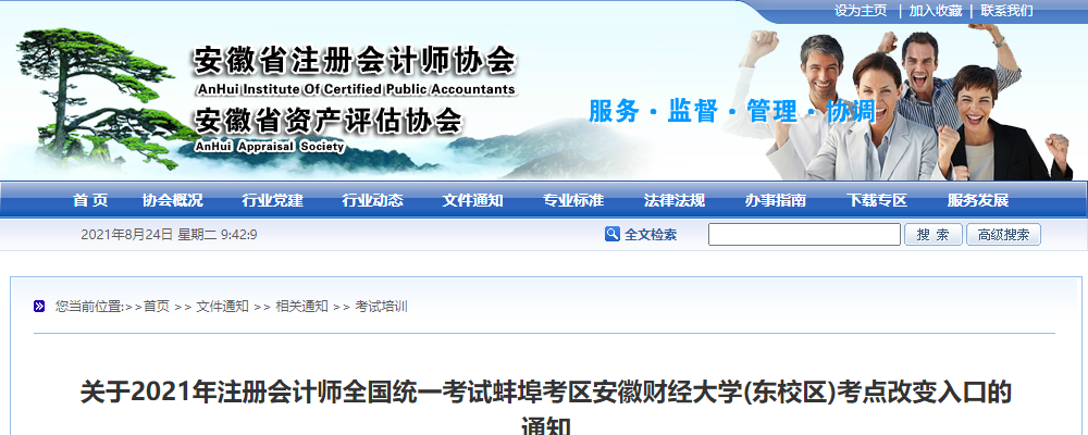 關(guān)于2021年注會(huì)考試蚌埠考區(qū)安徽財(cái)經(jīng)大學(xué)(東校區(qū))考點(diǎn)改變?nèi)肟诘耐ㄖ?/h1>