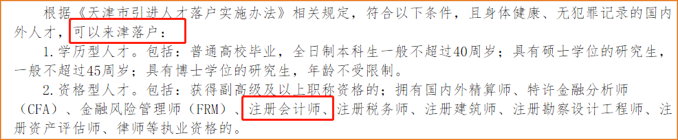 ● 天津注冊(cè)會(huì)計(jì)師可直接落戶 ●