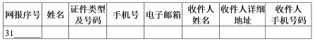 請(qǐng)按照以下表格模板填寫個(gè)人基本信息(網(wǎng)報(bào)序號(hào)、姓名、身份證號(hào)碼、手機(jī)號(hào)碼、電子郵箱、考試報(bào)名費(fèi)收據(jù)寄送地址),并寫入郵件正文,或以電子表格形式作為郵件附件上傳。