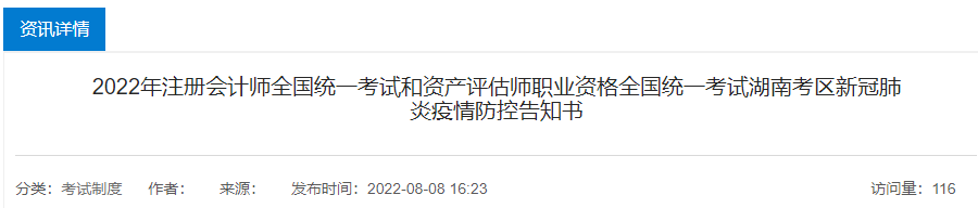 2022年注冊會(huì)計(jì)師考試湖南考區(qū)新冠肺炎疫情防控告知書