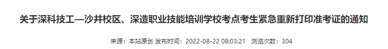 深圳注協(xié):關(guān)于深科技工—沙井校區(qū)、深造職業(yè)技能培訓(xùn)學(xué)??键c(diǎn)考生緊急重新打印準(zhǔn)考證的通知