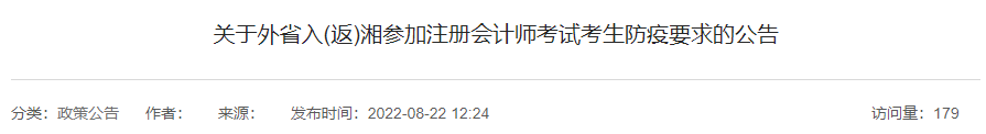 關(guān)于外省入(返)湘參加注冊(cè)會(huì)計(jì)師考試考生防疫要求的公告